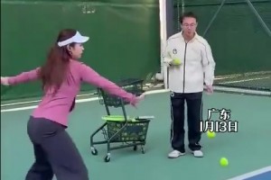 朋友打网球没打到,气急败坏用脚踢