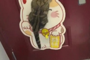 男子甩飞猫咪,它竟粘在门后板上