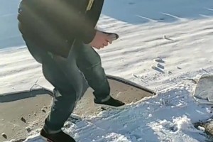 大雪后男子铲雪,像炒酸奶现场